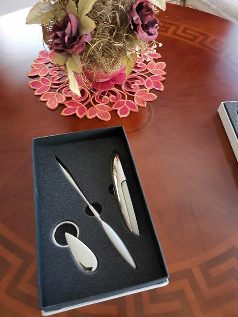 Ekskluzywny zestaw biurowy chrom Wizytownik Brelok Nożyk do listów Oryginalne szare pudełko Produkt nowy ...